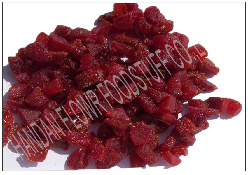 北京所產(chǎn)的果脯稱為京式果脯,是北京特產(chǎn),中外聞名。我國用蜂蜜腌制水果、蔬菜歷史悠久,早在春秋戰(zhàn)國就見諸文字記載,到三國時期已有蓮子、藕片、冬瓜條等蜜餞。唐代宮廷為了貯存入貢水果,采用蜂蜜泡浸,開始有"蜜煎"之稱。宋代蔗糖生產(chǎn)多起來,增添了糖漬橘餅、甜姜等。為了區(qū)別,用蜜做的叫蜜餞,用糖做的叫果脯。